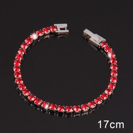 Add a touch of luxury to your style with this 17cm silver-plated tennis bracelet featuring dazzling red crystals. Perfect for parties, weddings, or daily wear.